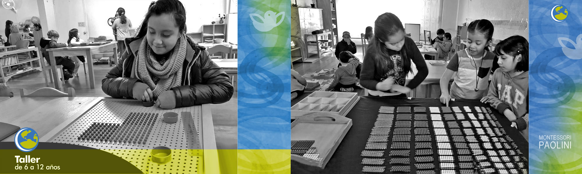 En Montessori Paolini contamos con un ambiente de Talleren el que dos Guías atienden un máximo de 40 niños. El grupo se subdivide en dos niveles: Taller I: de los 6 a los 9 años y Taller II: de los 9 a los 12 años.